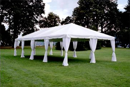Price listed is for a set of white leg drapes to fit a 30ft x 40ft frame tent and includes delivery, setup/takedown, and up to three days of continuous use. Leg drapes are only available for frame tent rentals.
