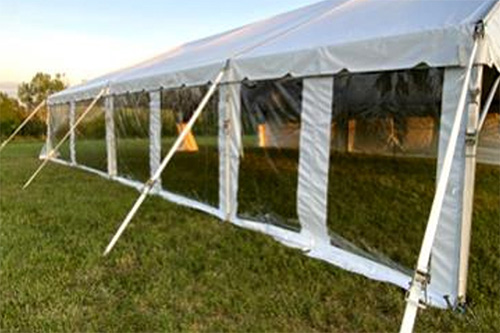 Price listed is for a single 10ft side curtain and includes delivery, setup/takedown, and up to three days of continuous use. Side curtains are available in 10ft and 20ft lengths for frame tent rentals only.